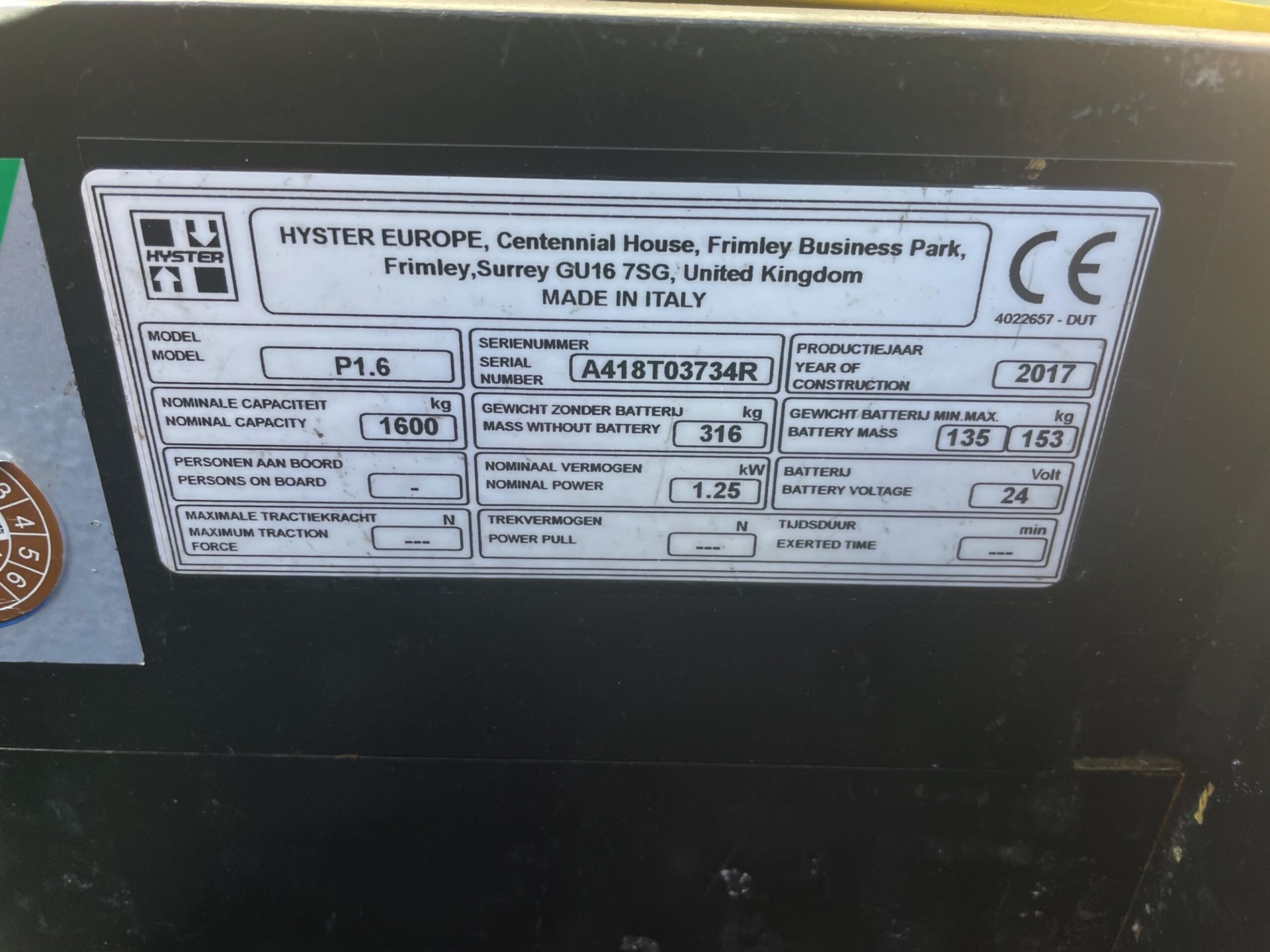 Deze palletwagen is een ideale keuze voor iedereen die op zoek is naar een betrouwbare en duurzame machine om materialen te verplaatsen in hun magazijn, werkplaats of fabriekshal. De accu's zijn nog in zeer goede staat en de palletwagen wordt geleverd met een oplader. Met een bouwjaar van 2019 en een urenstand van slechts 260 uur is deze palletwagen nog in uitstekende conditie en klaar voor gebruik.